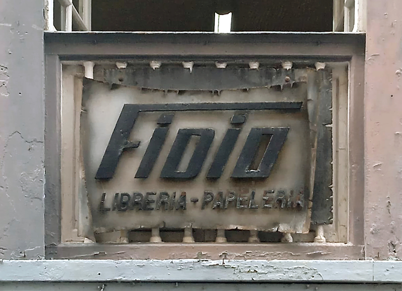 <p>Cartel con diseño del propio <strong>Fidio López</strong>, propietario de la librería - papelería, y elaborado por el alumnado del ciclo superior de la especialidad de forja artística de la <em>Escuela de Arte Manolo Blahnik</em> del curso 1992-1993. Así, bajo la dirección del profesor <strong>Isidro de la Cruz Lorenzo</strong>, los alumnos realizaron un panel en bronce con las letras superpuestas en negro. </p>
