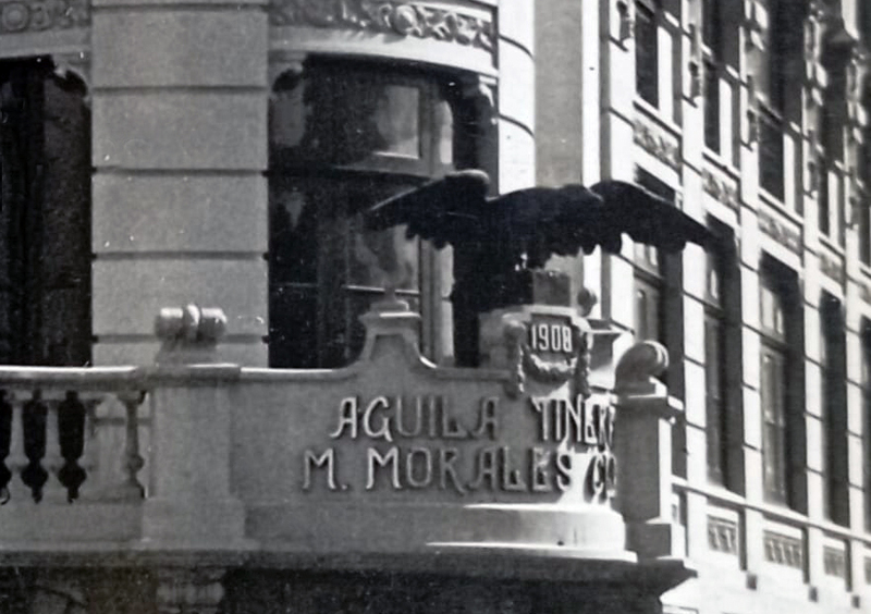 <!-- wp:paragraph --><p>Rótulo en altorrelieve con escultura de un águila sobre la marquesina de la antigua fábrica de tabacos <strong>Águila Tinerfeña</strong>, símbolo del auge industrial santacrucero de principios del siglo XX.</p><!-- /wp:paragraph --><!-- wp:details --><details class="wp-block-details"><summary>Contexto histórico</summary><!-- wp:paragraph {"placeholder":"Teclea / para añadir un bloque oculto"} --><p><br>El rótulo pertenecía a la empresa tabacalera Águila Tinerfeña, fundada en 1908 por la firma M. Morales y Cía. La inscripción combinaba letras corpóreas en altorrelieve con una escultura de un águila de alas desplegadas, símbolo de la marca. La figura se alzaba sobre una marquesina en el ángulo del edificio, acompañada del escudo de armas y la fecha fundacional.<br><br>El edificio fue construido entre 1923 y 1926, según proyecto de Domingo Pisaca. Representa una muestra del estilo ecléctico con ornamentación clasicista y se convirtió en un emblema visual de la ciudad durante décadas, junto a otros edificios de fábricas de tabaco que aún se conservan en Santa Cruz como <a href="http://localhost/wordpress/elemento/cinema-victoria/" data-type="elemento" data-id="9944">La Victoria</a>, La Tinerfeña, La Lucha y La Belleza. Una vez cerrada la fábrica, el edificio fue adquirido por Víctor Zurita, propietario del periódico <strong>La Tarde</strong>, nombre por el que es conocido este inmueble en la actualidad. Cuando el diario cerró, el edificio permaneció vacío hasta que el Parlamento de Canarias lo compró en 1984 y lo remodeló en 2000 para albergar la sede de la Audiencia de Cuentas.</p><!-- /wp:paragraph --></details><!-- /wp:details -->