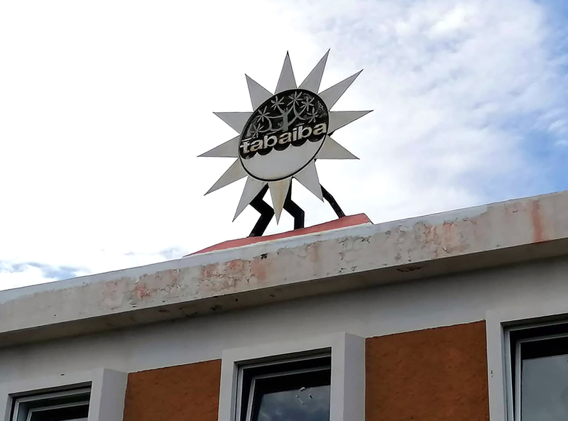 <!-- wp:paragraph --><p>Rótulo corpóreo de estilo modernista, instalado en la fachada del edificio principal de la <strong>Urbanización Tabaiba</strong>, hoy en estado de abandono. Formaba parte de la identidad visual de la urbanización, un desarrollo urbano de mediados o finales del siglo XX en el litoral este de Tenerife. El rótulo aún conserva buena parte de sus letras originales, aunque presenta notables signos de deterioro. La tipografía recuerda a los estilos modulares del diseño gráfico de los años 60-70. Su valor reside no sólo en lo estético, sino también en lo simbólico: representa una época de expansión urbana asociada al turismo y al auge del litoral residencial en la isla.<br><br>Tabaiba fue una de las urbanizaciones planificadas en la costa del municipio de El Rosario durante el auge del desarrollismo en Canarias. Su rótulo principal no sólo marcaba el acceso al conjunto, sino que constituía un elemento de identidad colectiva y orientación territorial. Este tipo de rótulos, comunes en urbanizaciones y complejos turísticos de la época, fueron realizados en muchos casos por encargo a rotulistas locales o empresas especializadas en señalética arquitectónica. La tipografía empleada —modular, redondeada, en caja baja— remite a una estética modernista optimista, característica de la arquitectura de ocio y expansión suburbana.</p><!-- /wp:paragraph -->